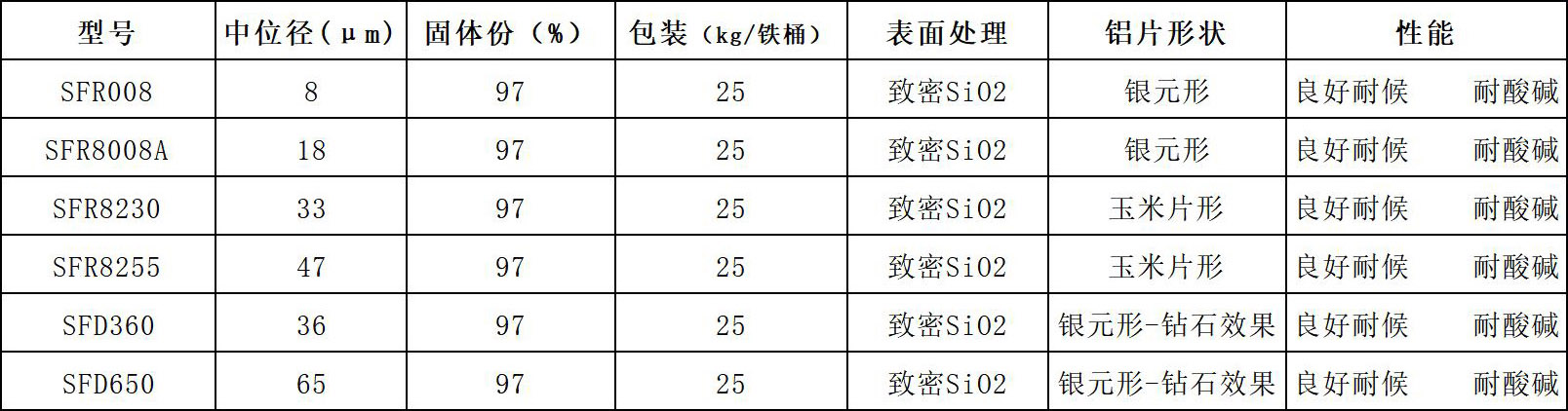 02 超致密包覆鋁銀粉:采用特殊溶膠-凝膠處理的致密二氧化硅包覆,應(yīng)用于建筑鋁型材、廚具等耐腐蝕性較為苛刻的環(huán)境。