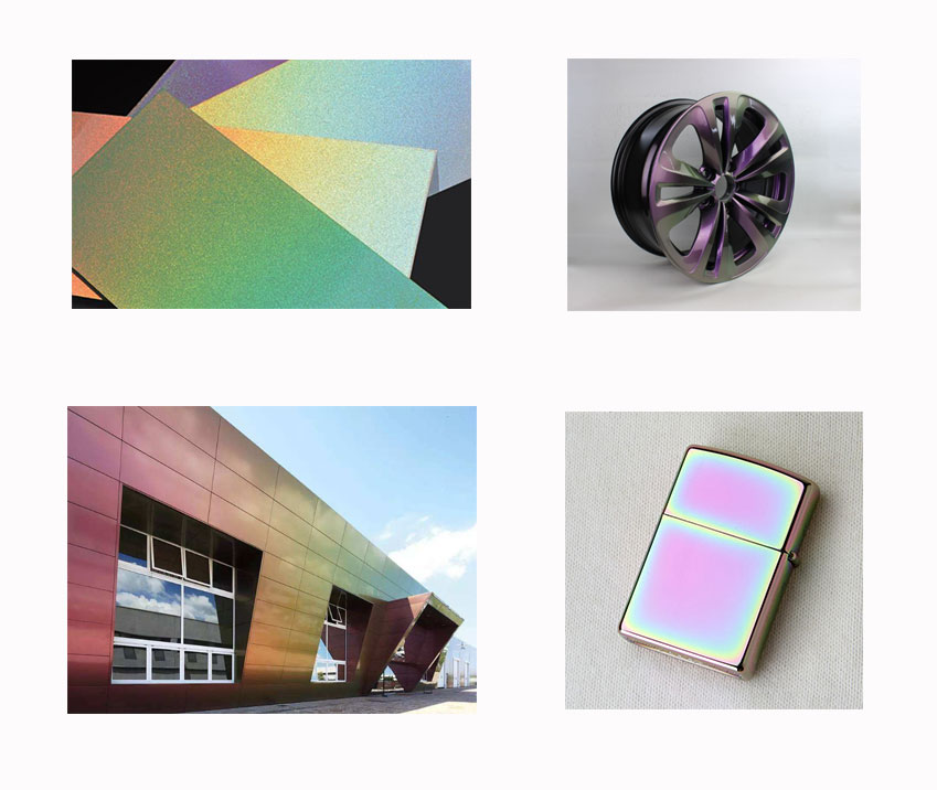 專門用于配制噴涂油漆,可用于任何光滑基材表面,在汽車、家電、手機(jī)、玩具、工藝品、包裝(化妝品、酒、煙包)、家居裝飾、運(yùn)動(dòng)器具、魚(yú)竿、皮革、墻紙等表面裝飾以及各種防偽領(lǐng)域具有廣泛用途。也可配制成油墨用于各種印刷;配制的鐳射鏡面油墨專門用于各種透明基材(玻璃、PET、PC、PMMA、PVC等),在家電面板、家居玻璃移門、手機(jī)面板等表面裝飾以及各種防偽領(lǐng)域得到廣泛應(yīng)用 。