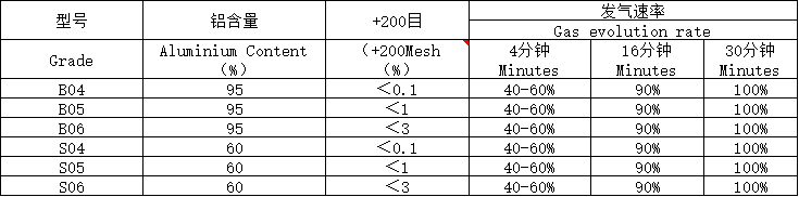 本產(chǎn)品采用國(guó)標(biāo)鋁為原材料進(jìn)行球磨生產(chǎn),產(chǎn)品具有活性鋁含量高、發(fā)氣速率均勻、易于分散、儲(chǔ)存時(shí)間長(zhǎng)等優(yōu)點(diǎn)。
