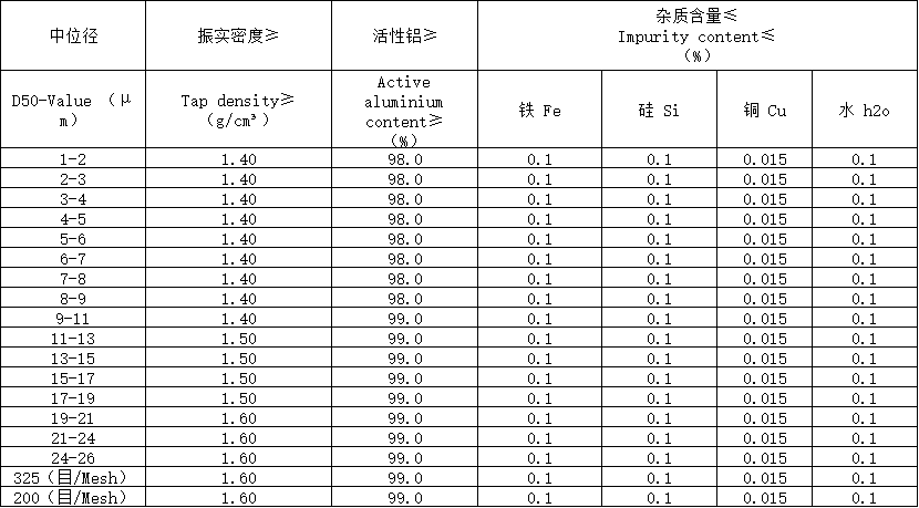 1.粒度均勻、分布區(qū)間窄、振實密度高。2.球形度高、雜質(zhì)少、活性鋁98%以上。